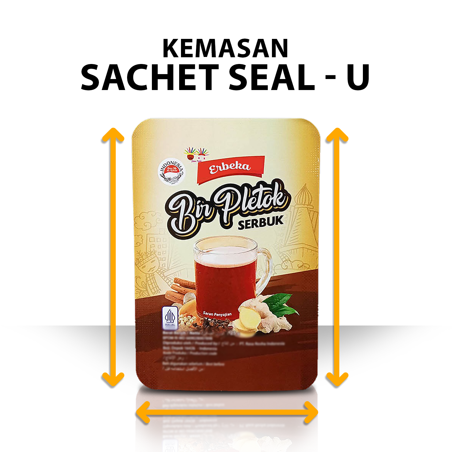 Kemasan yang 3 sisinya tersegel membentuk huruf “U”. Cocok untuk produk seperti serbuk, rempah, dll